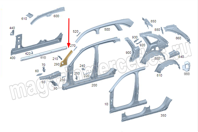 Передняя стойка внутренняя справа Mercedes GLC Class X254
