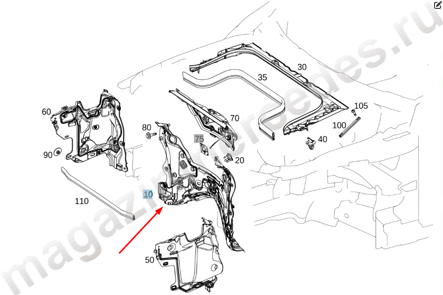 Перегородка моторного отсека посередине Mercedes GLE Class V167