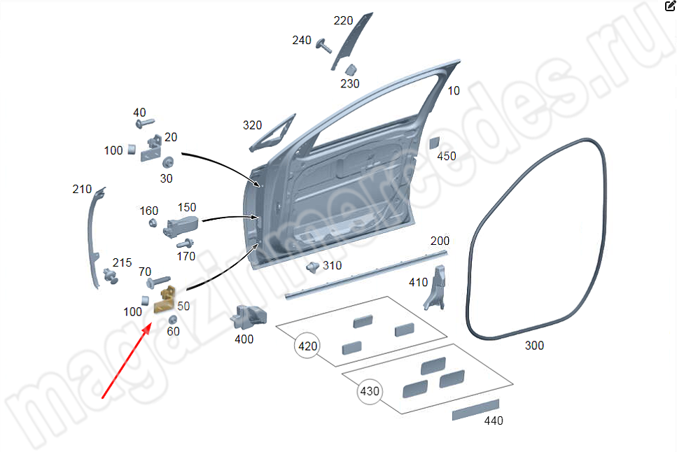 Петля передней левой двери нижняя Mercedes E Class W214