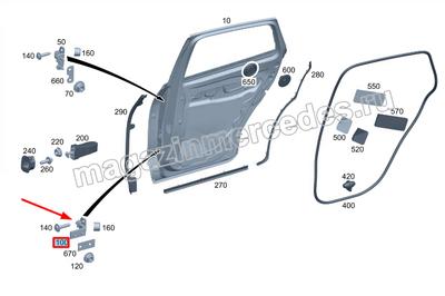 Петля задней левой двери нижняя Mercedes EQE Class SUV X294