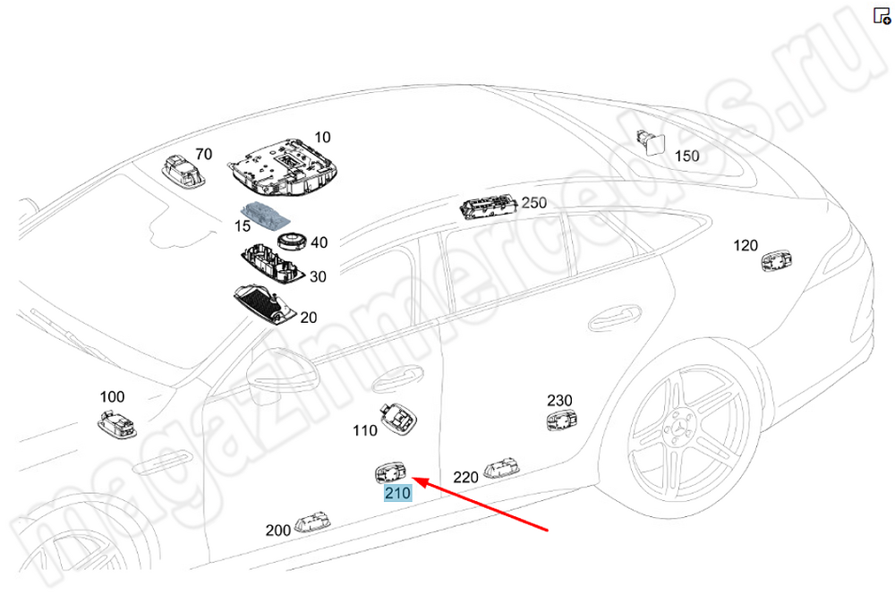 Плафон освещения кармана двери Mercedes AMG GT X290