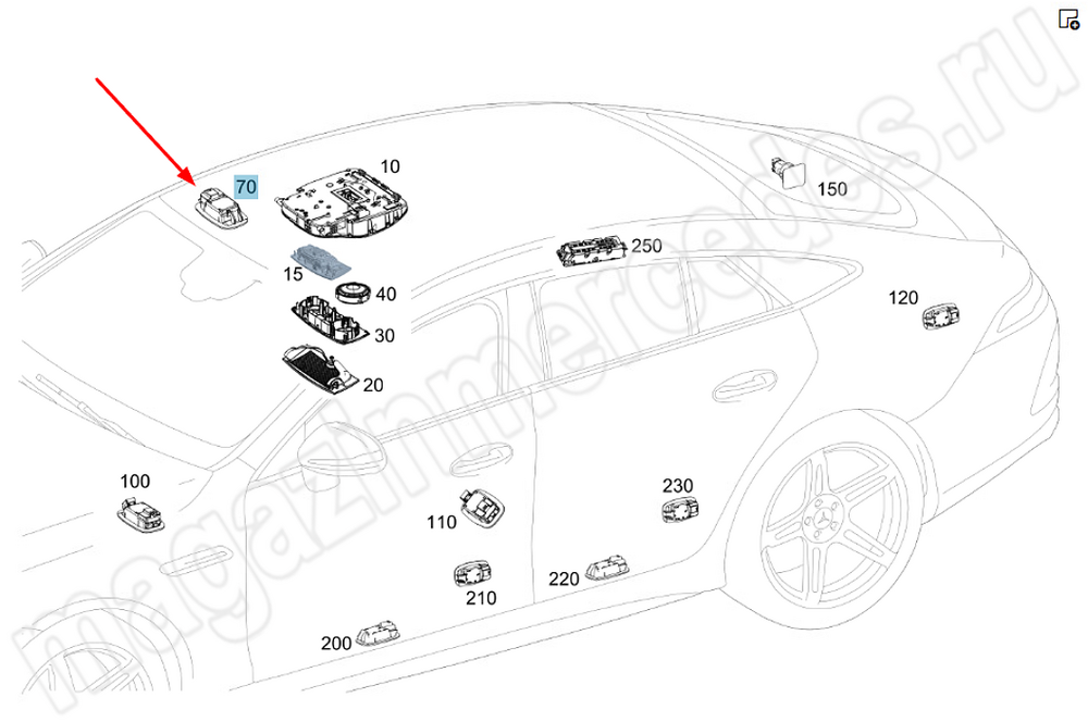 Плафон освещения облицовки крыши Mercedes AMG GT X290