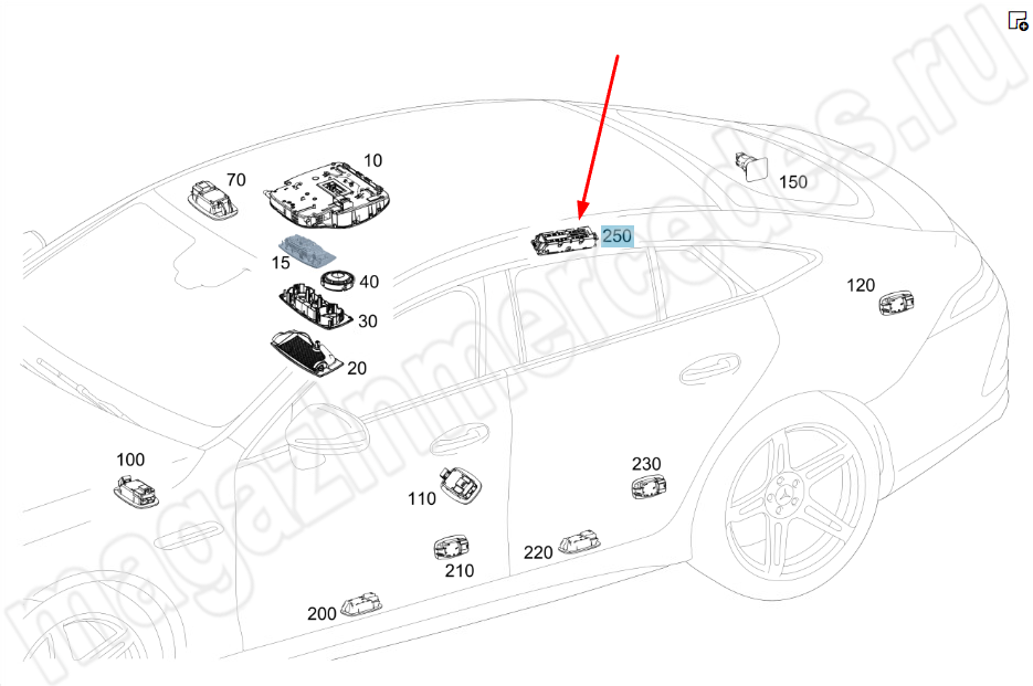 Плафон освещения поручня слева Mercedes AMG GT X290