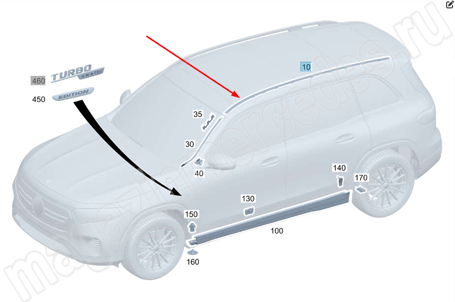 Планка декоративная крыши справа Mercedes GLB X247