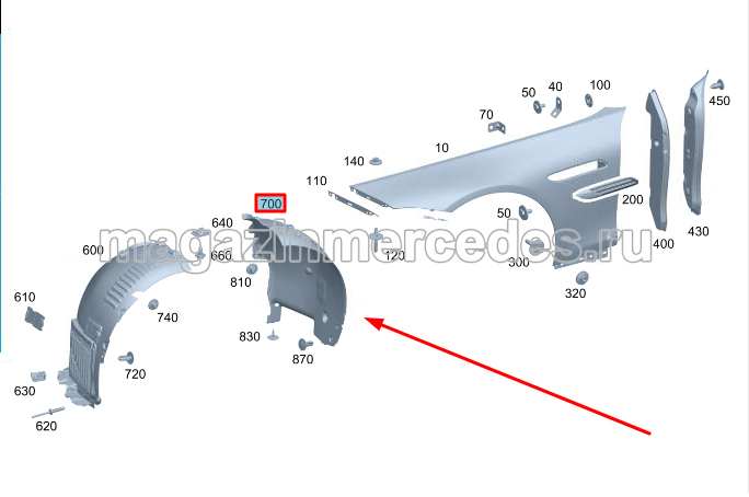 Подкрылок передний левый задняя часть Mercedes SL Class R232