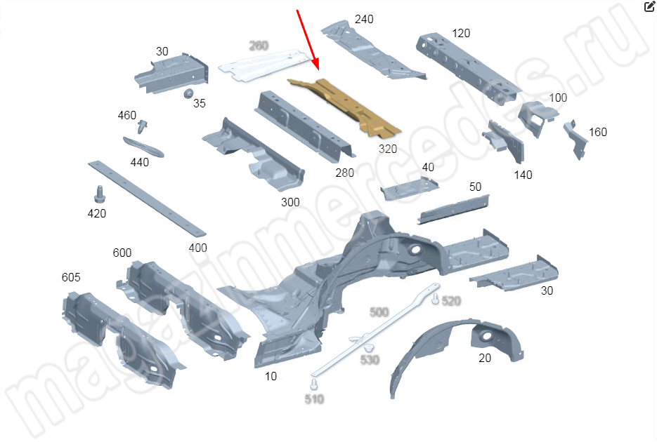 Поперечина днища над задним мостом Mercedes E Class W214