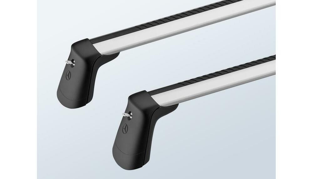 Алюминиевые поперечины, идеально подходящий к кузову вашего автомобиля Mercedes-Benz и состоящий из двух перекладин с защитными профилями.