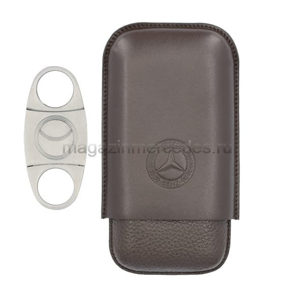 Портсигар Mercedes-Benz Cigar Case, Classic Для стильного хранения Ваших сигар: практичный портсигар вмещает до трех сигар и всегда надежно хранится. Чехол из зернистой и гладкой воловьей кожи отделан нежнейшей кожей ягненка и оснащен ножом из высококачественной нержавеющей стали.