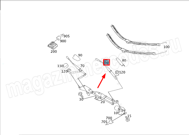 Поводок стеклоочистителя левый для Мерседес ML class W164