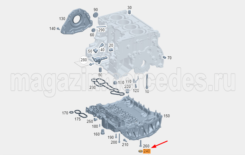Пробка нижней секции блока цилиндров 25 мм Mercedes CLA C174