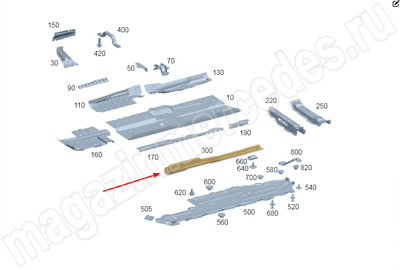 Продольный несущий элемент днища справа Mercedes E Class W214