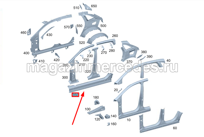 Продольный несущий элемент снаружи слева Mercedes EQE SUV Class X294