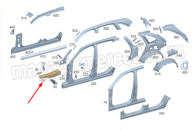 Продольный несущий элемент справа Mercedes GLC Class X254