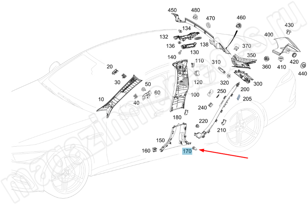 Пружинный зажим облицовки выемки под ручку крышки багажника Mercedes CLE Class C236