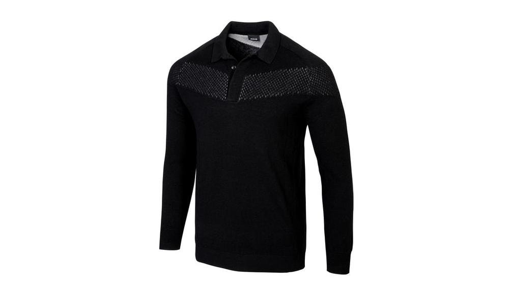 Мужской пуловер поло AMG черно-серебристо-серого цвета станет идеальным спутником в холодную погоду. Он изготовлен из 60 % шерсти, 35 % лиоцелла и 5 % кашемира и покоряет высоким комфортом ношения. Изготовленный из отдельно связанных частей пуловер поло имеет серебристо-серую структуру вязки верха передней и задней части, а также на плечах. Воротник, манжеты рукавов и нижний край выполнены в резинку 1x1. Кроме регланных рукавов пуловер имеет потайную застежку на трех пуговицах цвета «Пушечный металл», завершающих дизайн изделия покроя Slim Fit. В боковом шве и на внутренней стороне горловины вшита бирка с логотипом AMG. - Цвет: черный / серебристо-серый - Материал: 60 % шерсть/35 % лиоцелл/5 % кашемир - Размеры: S–XXL - Slim Fit