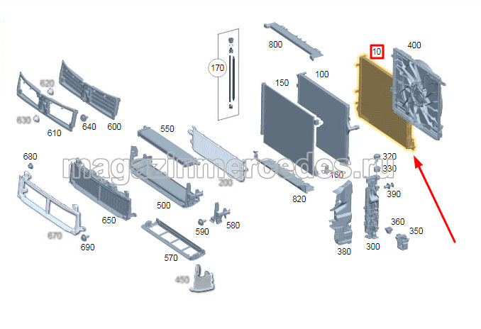 Радиатор охлаждения двигателя Mercedes SL Class R232