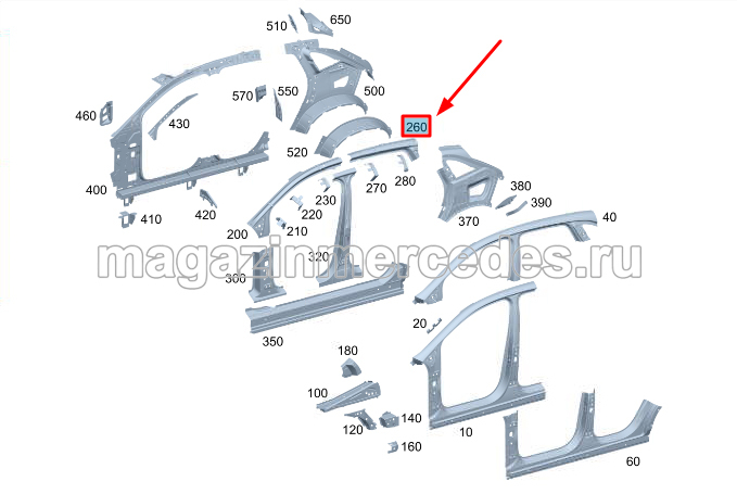 Рама крыши снаружи сверху справа Mercedes EQE SUV Class X294