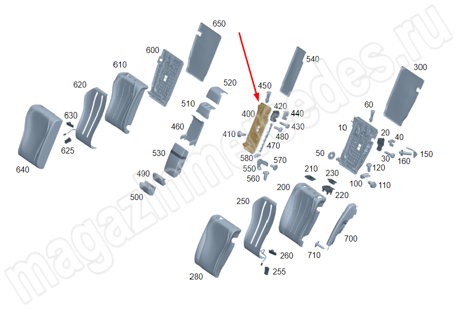 Рама спинки заднего сиденья посередине Mercedes EQE SUV X294