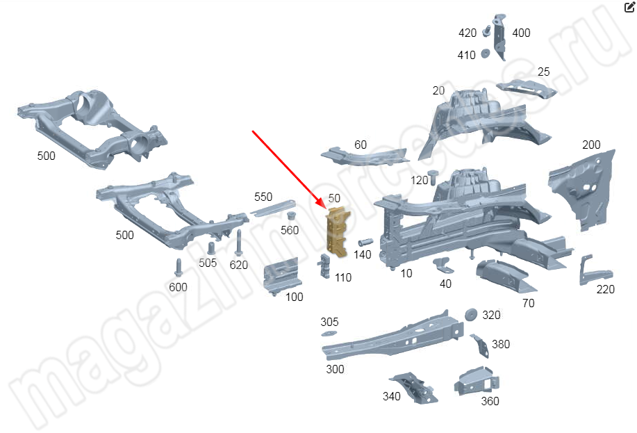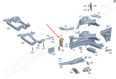 Распорка лонжерона спереди слева Mercedes E Class W214