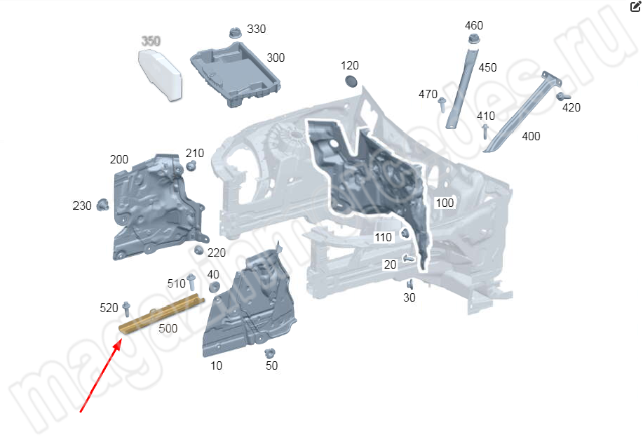 Распорка перегородки моторного отсека спереди справа Mercedes E Class W214