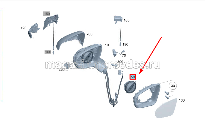 Редуктор зеркала заднего вида Mercedes SL Class R232