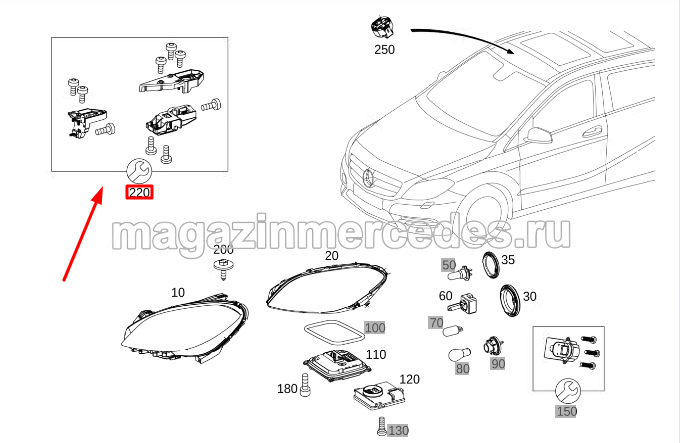 Ремкомплект фары левой Mercedes B Class W246