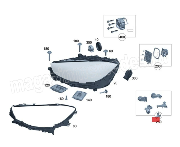 Ремкомплект крепления фары левый для Мерседес