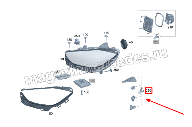 Ремкомплект крепления правой фары для Mercedes C class W206