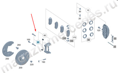 Ремкомплект суппорта /2 направляющие + 2 пыльника/ Mercedes A Class W177