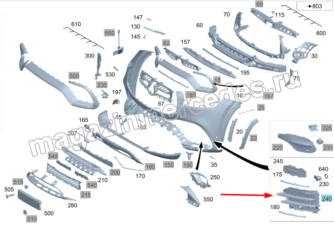 Решетка бампера передняя правая