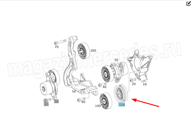 Ролик ремня на кронштейне натяжителя Mercedes C Class W205