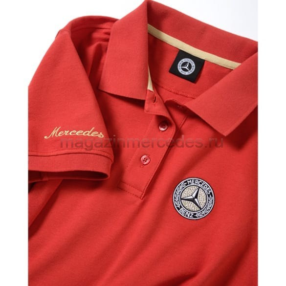Элегантная и модная женская футболка поло обладает слегка приталенным по фигуре покроем Slim Fit. Изготовлена из 95 % хлопка и 5 % эластана, обеспечивает максимальный комфорт. Привлекает внимание особенная деталь: историческая звезда Mercedes на груди. Надпись Mercedes золотистого цвета на правом рукаве гармонично дополняет дизайн, приобретая эту футболку, Вы делаете замечательный выбор.