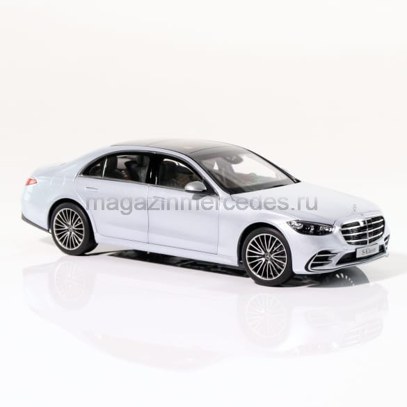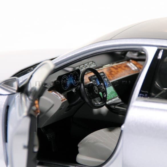 Собранная вручную модель, которую отличает высочайшая точность передачи деталей: Длиннобазная модификация седана S-Класса не только окрашена в аутентичный цвет, но и выполнена с соблюдением максимальной точности в деталях интерьера – от высококачественно оформленного салона до флокированного пола в салоне и багажнике. Фары MULTIBEAM LED, панорамная крыша, 3D-дисплей водителя, а также многоспицевые легкосплавные колесные диски AMG диаметром 21 дюйм (53,3 см) завершают комплектацию спорткара, дополненную также скрытыми ручками дверей и мультимедийным дисплеем OLED. Модель автомобиля поставляется в упаковке Mercedes-Benz в комплекте с отверткой, с помощью которой модель легко откручивается от пенопластовой упаковки. Кроме этого прилагается перчатка для защиты остекления и лакированного кузова модели от отпечатков пальцев.