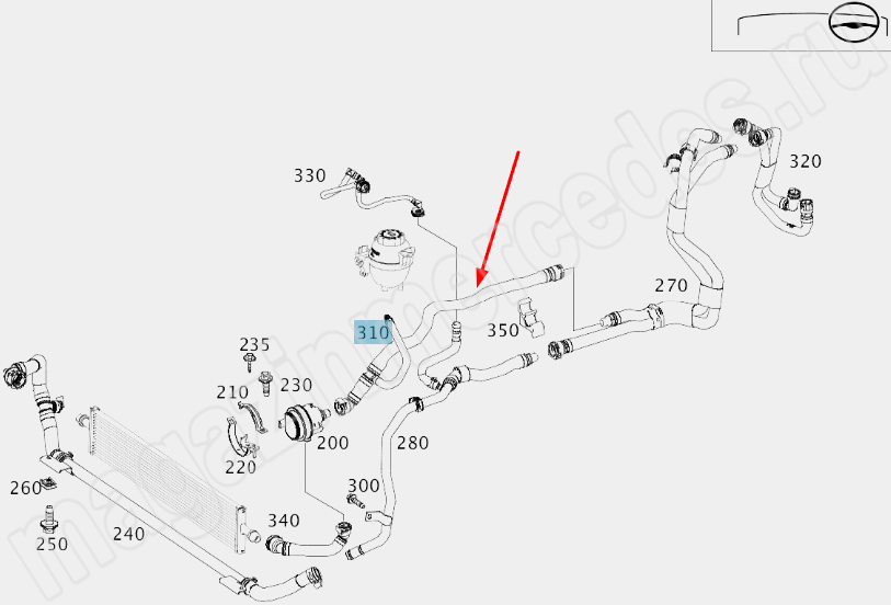 Шланг охлаждения АКБ от насоса к разъему Mercedes