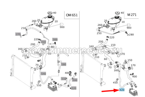 Шланг охлаждения двигателя к радиатору масла АКПП Mercedes C Class W204