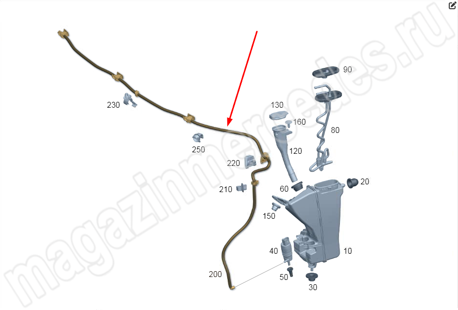 Шланг омывателя лобового стекла с форсунками и обогревом Mercedes C Class W206