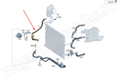 Шланг от радиатора низкотемпературного контура к насосу системы охлаждения и разъёму Mercedes GLC Class X254