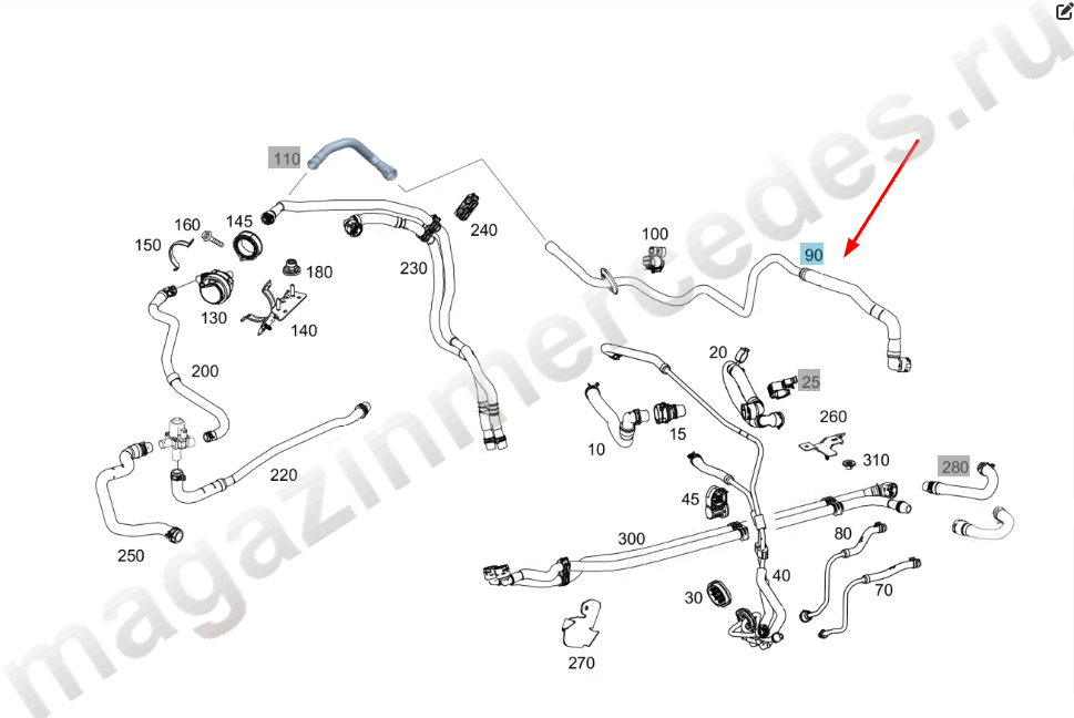 Шланг отопительного контура от теплообменника к тройнику Mercedes GLE V167