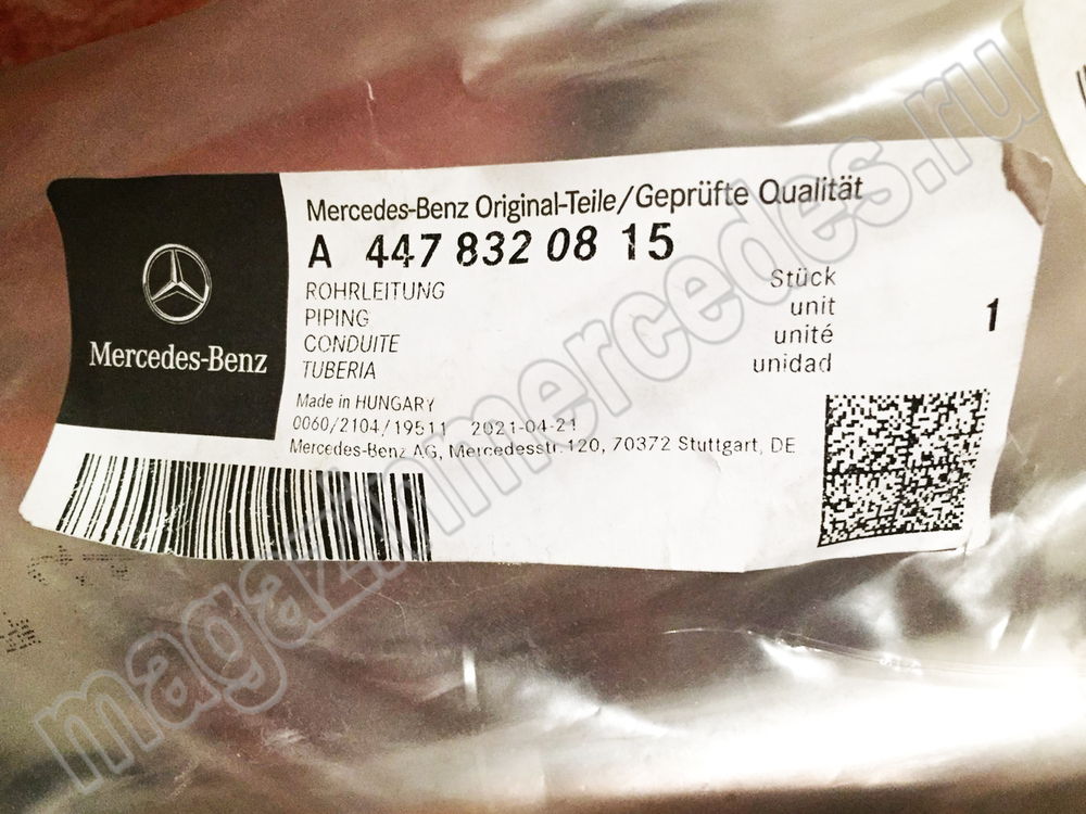 Шланг отопителя задней части салона на колесной арке Mercedes EQV Class BR447