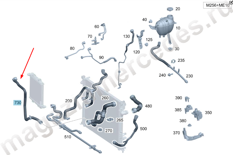Шланг системы охлаждения двигателя от радиатора к правому разъёму Mercedes GLE Class V167