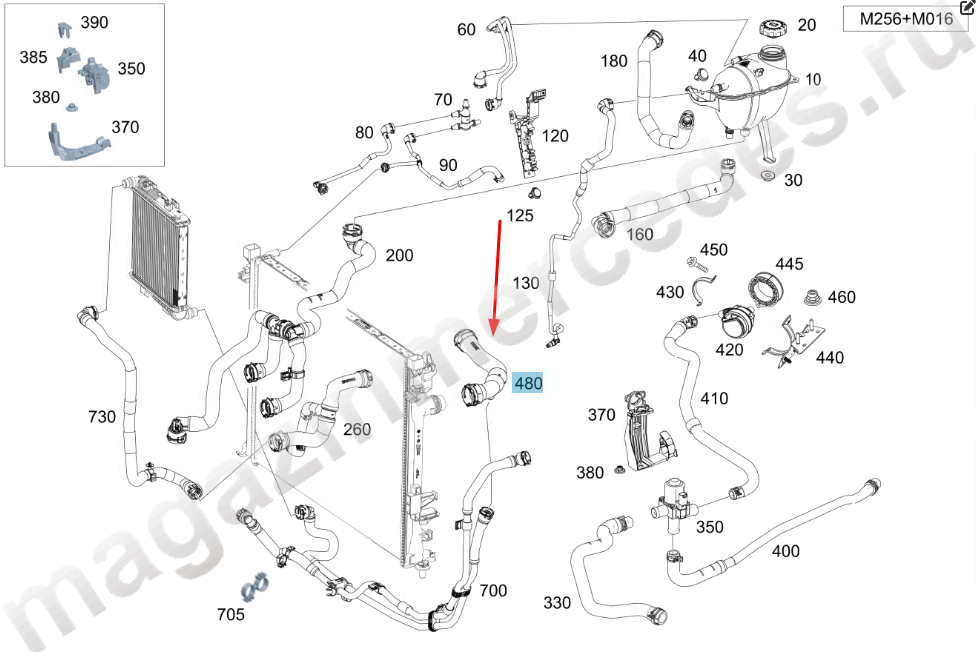 Шланг системы охлаждения двигателя от термостата к радиатору Mercedes GLE Class V167