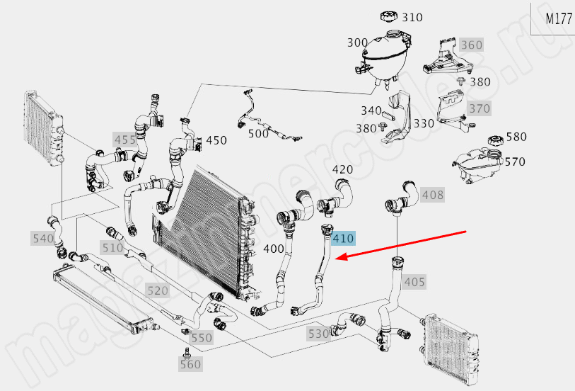 Шланг системы охлаждения от разъёма к радиатору (левая сторона) Mercedes AMG GT X290