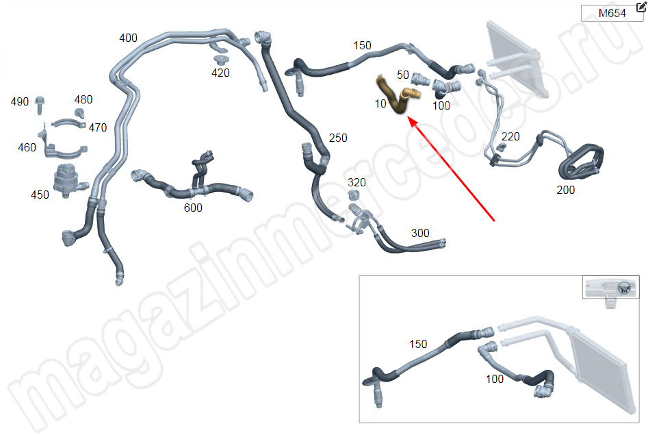 Шланг системы отопителя от двигателя к разъему Mercedes E Class W214