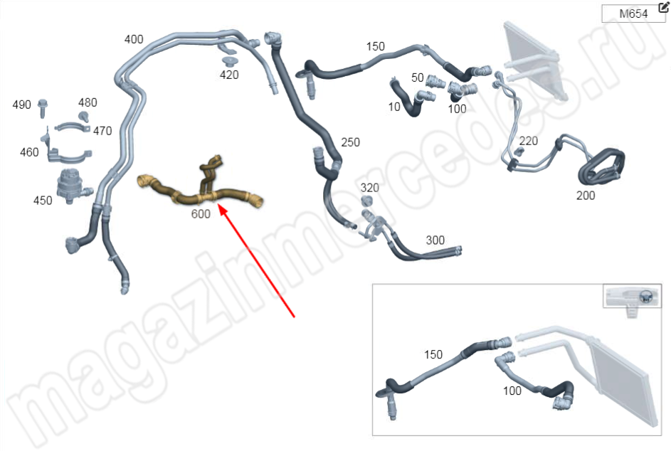 Шланг системы отопителя от насоса системы охлаждения к двигателю Mercedes E Class W21