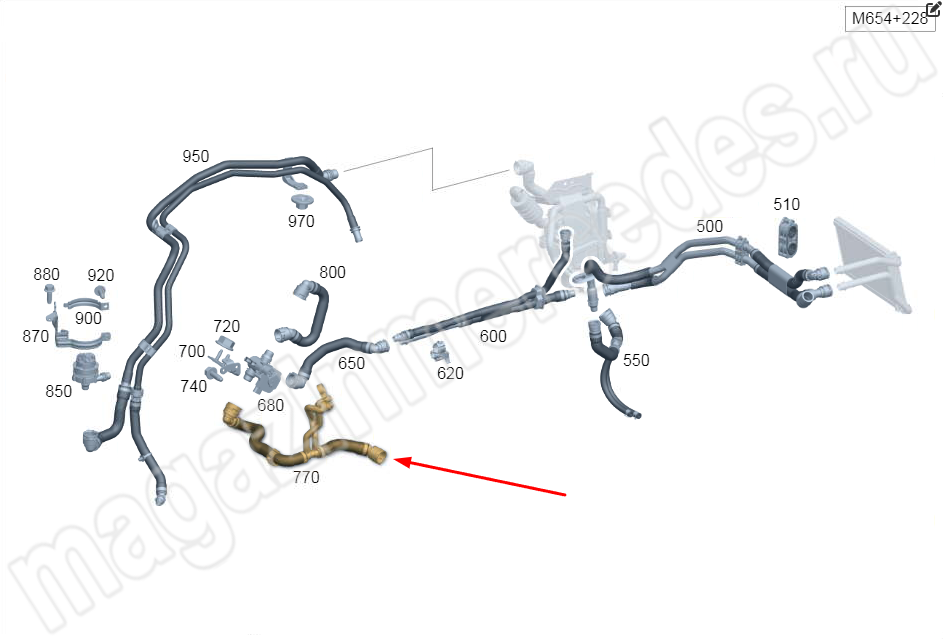 Шланг системы отопителя от разъёма к клапану Mercedes E Class W214