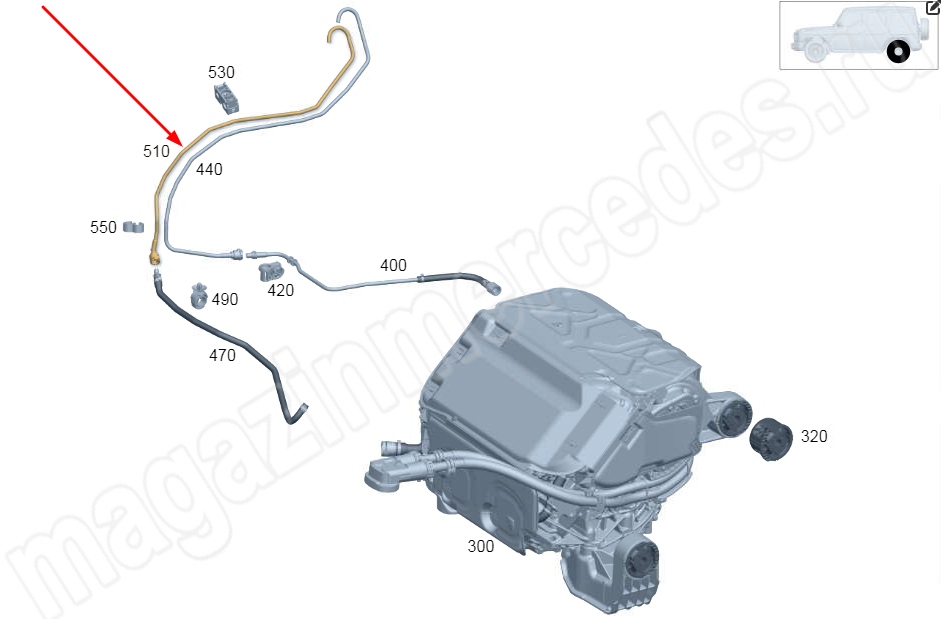 Шланг вентиляционный электропривода от разъема к модульному брызговику Mercedes EQG