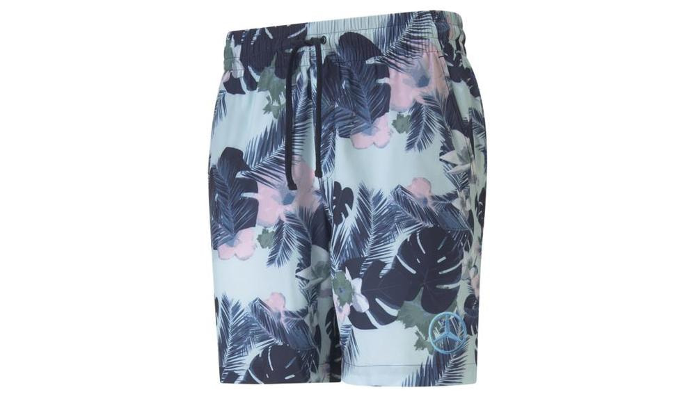 Если вы хотите повысить свое спортивное мастерство, ничего не следует оставлять на волю случая при выборе одежды для гольфа. Мужские шорты для гольфа умело сочетают в себе комфортность, предоставляя оптимальную свободу движений, со спортивным дизайном. Даже в теплые летние дни особый состав полиэстера и эластана гарантирует, что образовавшаяся влага легко транспортируется наружу – для приятного ощущения сухости на коже, будь то во время игры или после нее на встречах в гольф-клубе. Небольшие предметы, такие как ключ от машины для гольфа, легко поместятся в двух боковых втачных карманах, а эластичный пояс на кулиске можно легко отрегулировать в соответствии с объемом вашего тела. Что касается оптики, то мужские шорты для гольфа ничего не оставляют на волю случая и подкупают принтом листьев темно-синего цвета, цветами и вышитой звездой Mercedes-Benz на штанине.