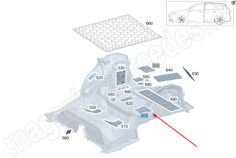 Шумоизоляция днища в задней зоне Mercedes GLB X247