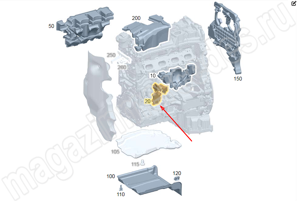 Шумоизоляция двигателя слева спереди Mercedes E Class W214