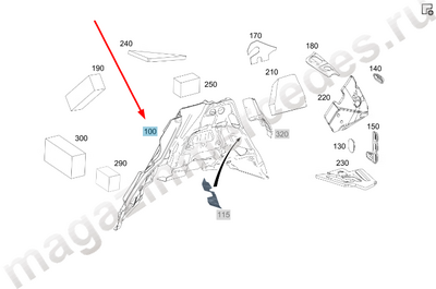 Шумоизоляция колесной арки заднего правого колеса Mercedes GLE Class V167